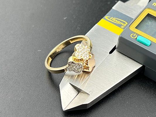 14k Yellow Gold 3-Leaf Clover Ring with CZ Diamond Accents - Size 6 - 2.6 Grams