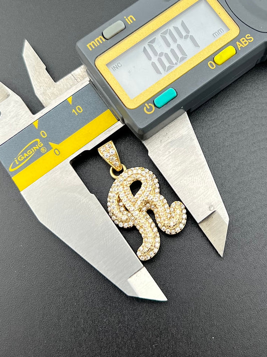 14k Yellow Gold 3D Bubble Letter 'R' Pendant with CZ Diamond Glamour