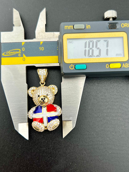 14K Gold Dominican Flag Shirt Bear Pendant with CZ Diamonds - 5.8g, 18.57x34.03mm