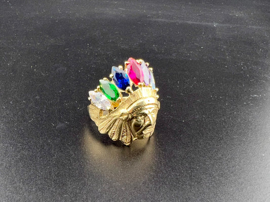 14K Indian Head Ring with CZ Feathered Crown - 12g, Size 12, 29.40x25.27mm