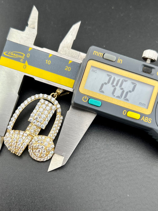 14k Gold CZ Diamond Microphone and Headphones Pendant - 7g