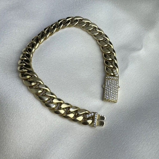 14K Yellow Gold 13.2 Grams Miami Cuban 9.75mm Link Bracelet Cubic Zirconia 8in