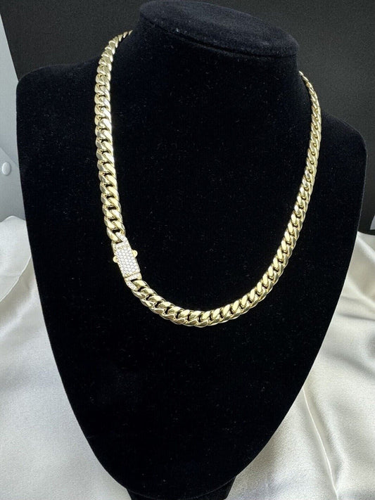 14K Yellow Gold 16.6 Grams Miami Cuban Link Chain 7.45mm Necklace W CZ 18.25in