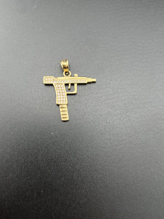 14K Yellow Gold 2.9 Grams Machine Gun Pendant Cubic Zirconia 27.87x24.36mm Pave