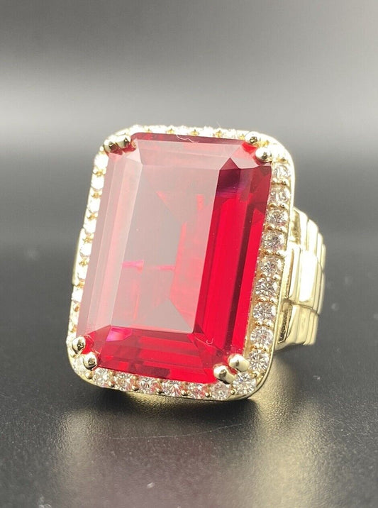 14k Yellow Gold 21.5G Red Rectangle Cubic Zirconia Textured Ring 27x21mm Sz 11.5