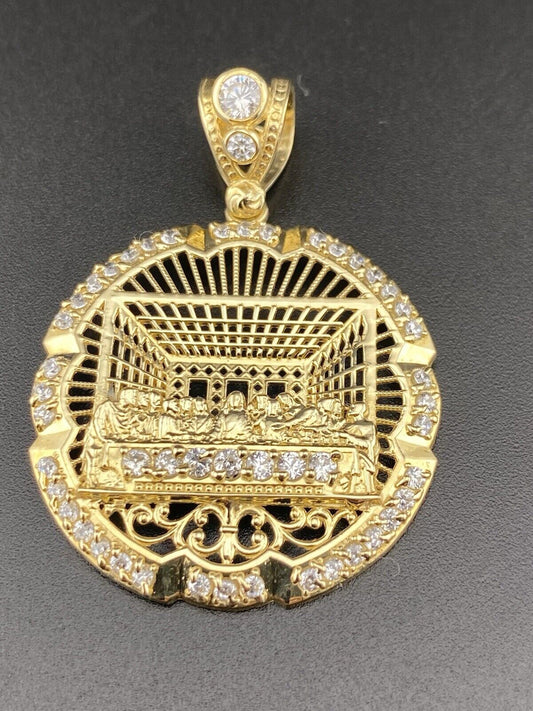14K Yellow Gold 3D Last Supper Church Pendant 7.9G CZ Glamour Large 46x34mm