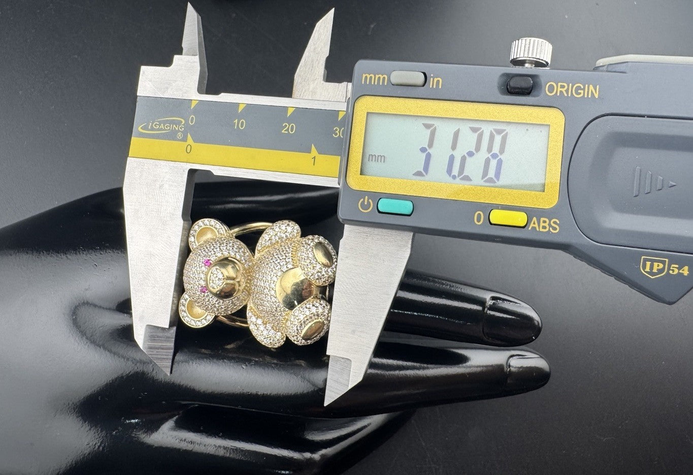 14K Gold Beltran Teddy Bear Ring Sz 7.25 Large 31mm 13.2 Grams Pink Eyes Pave
