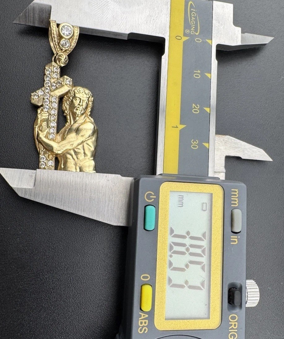 14K Gold Jesus Carrying Cross Pendant 4.5 Grams 38x16mm CZ Diamond Faith Charm