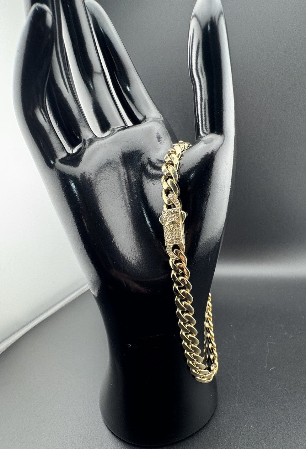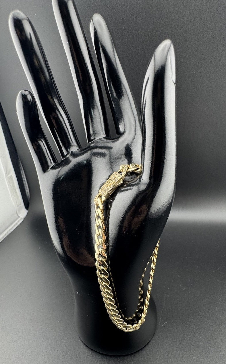 14K gold Miami Cuban link anklets with CZ emblem are bold and rare—secure yours today before it’s gone!