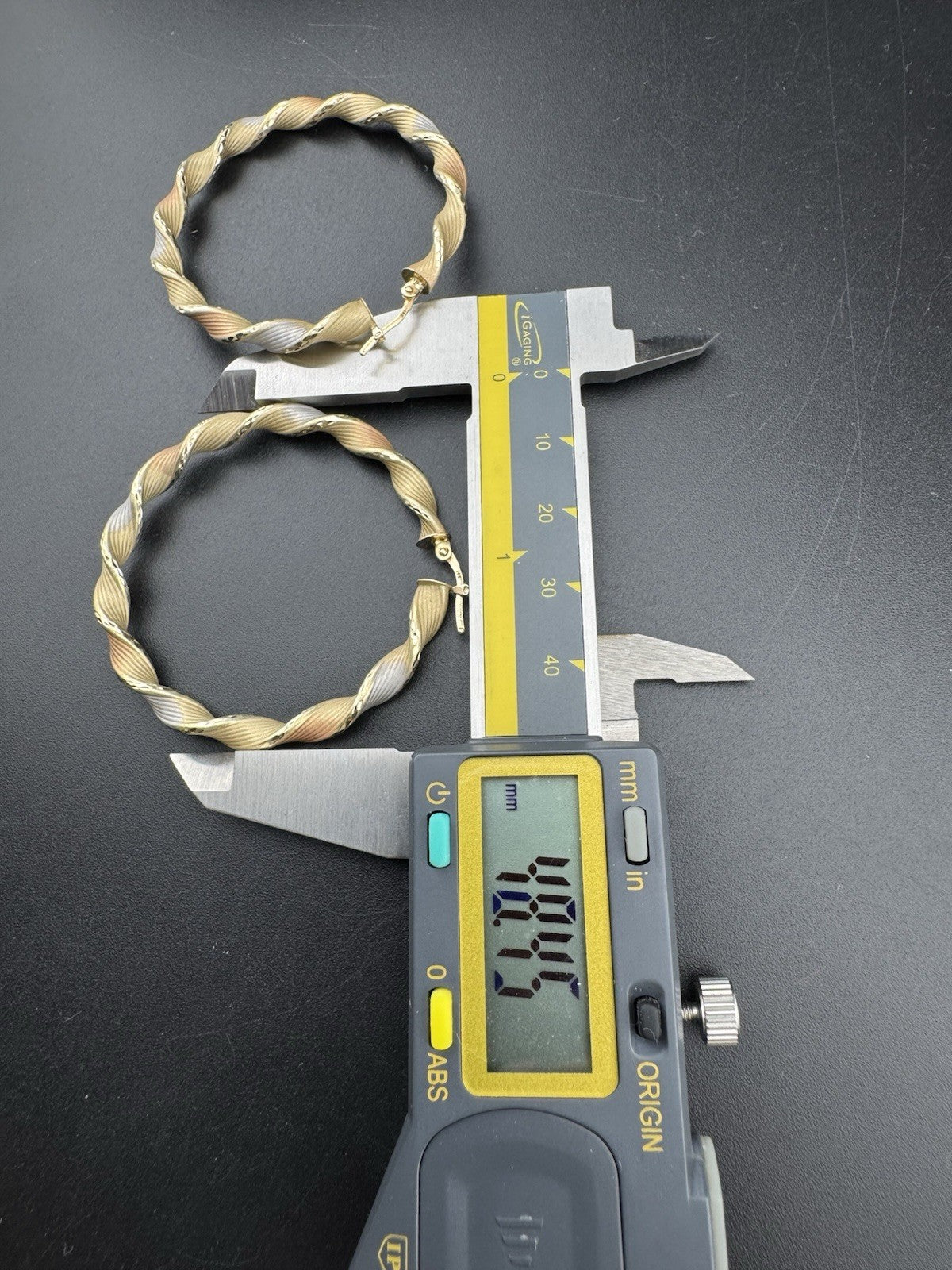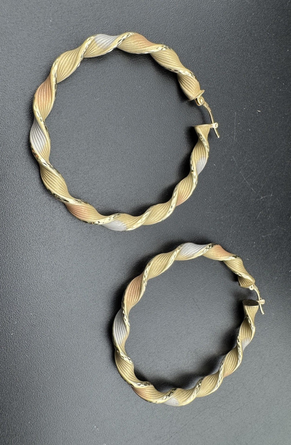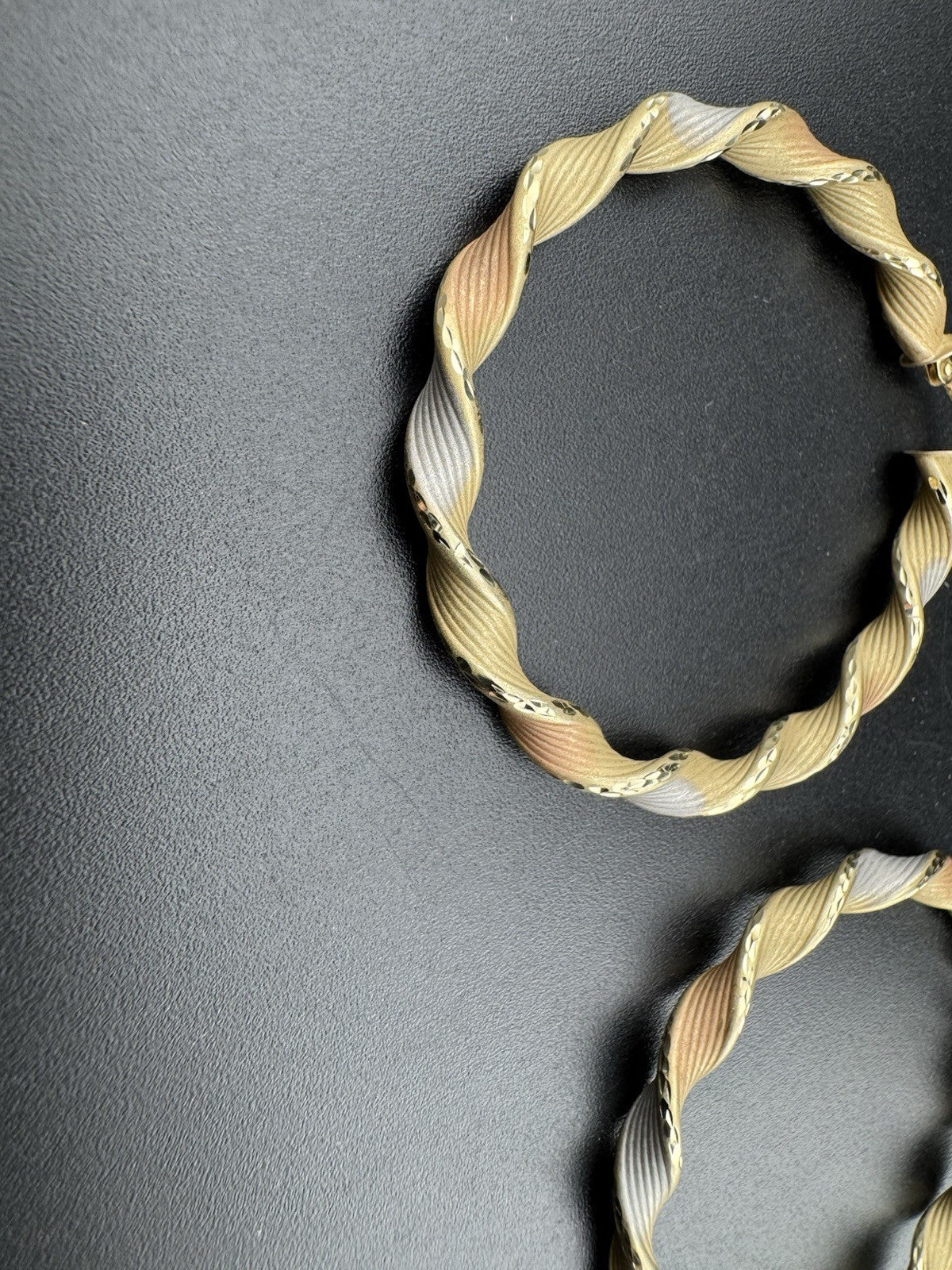 14K Tri-Tone Gold Twist Hoop Earrings Large 48.45mm 5g White Rose Yellow