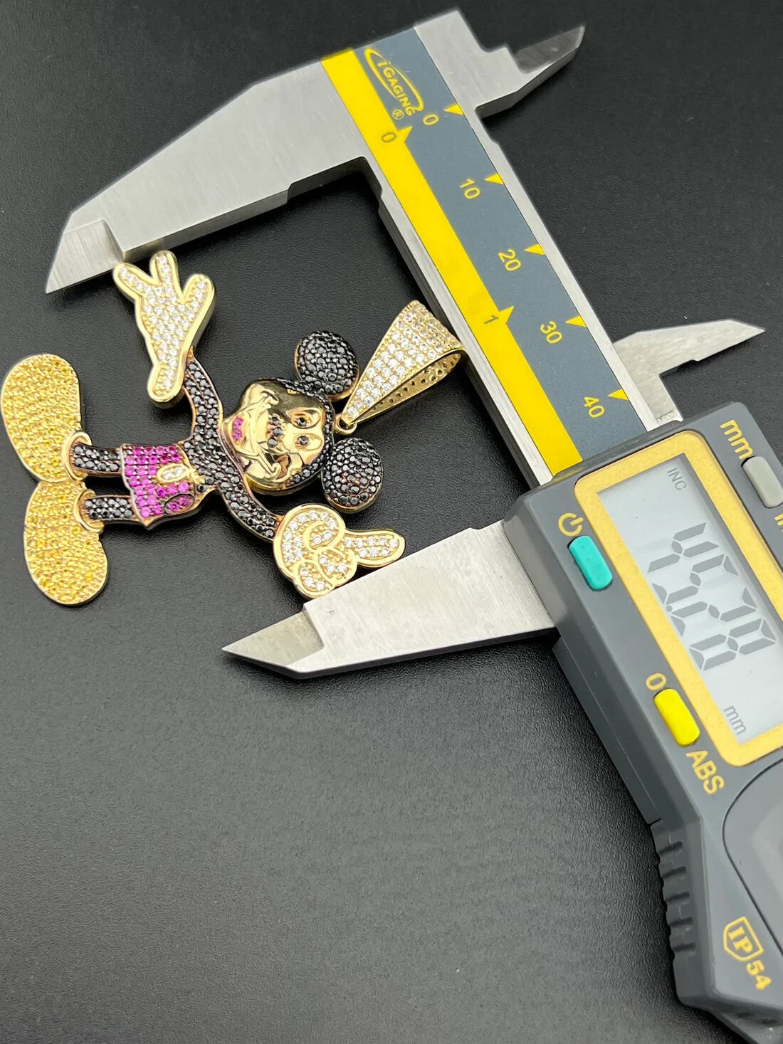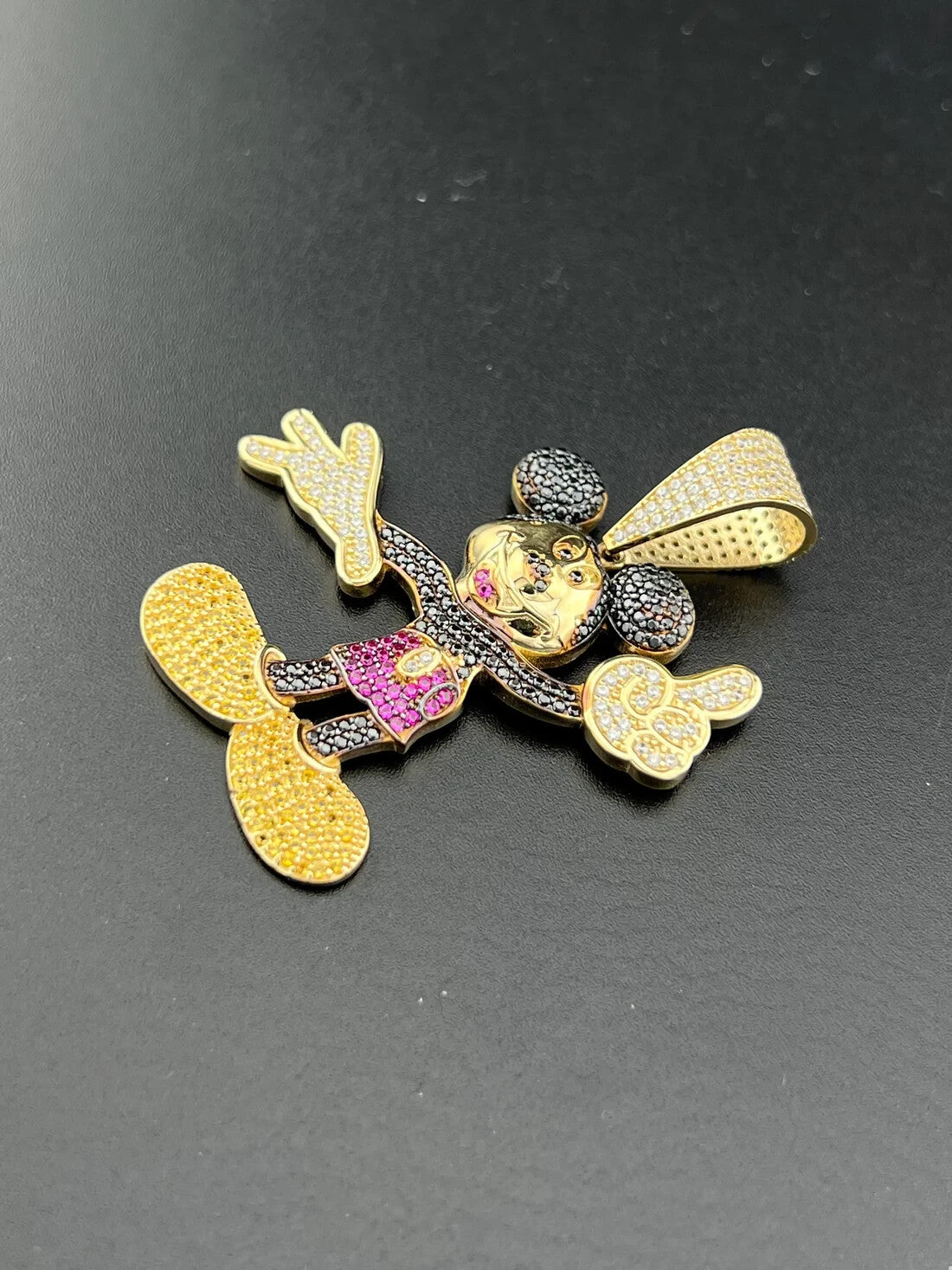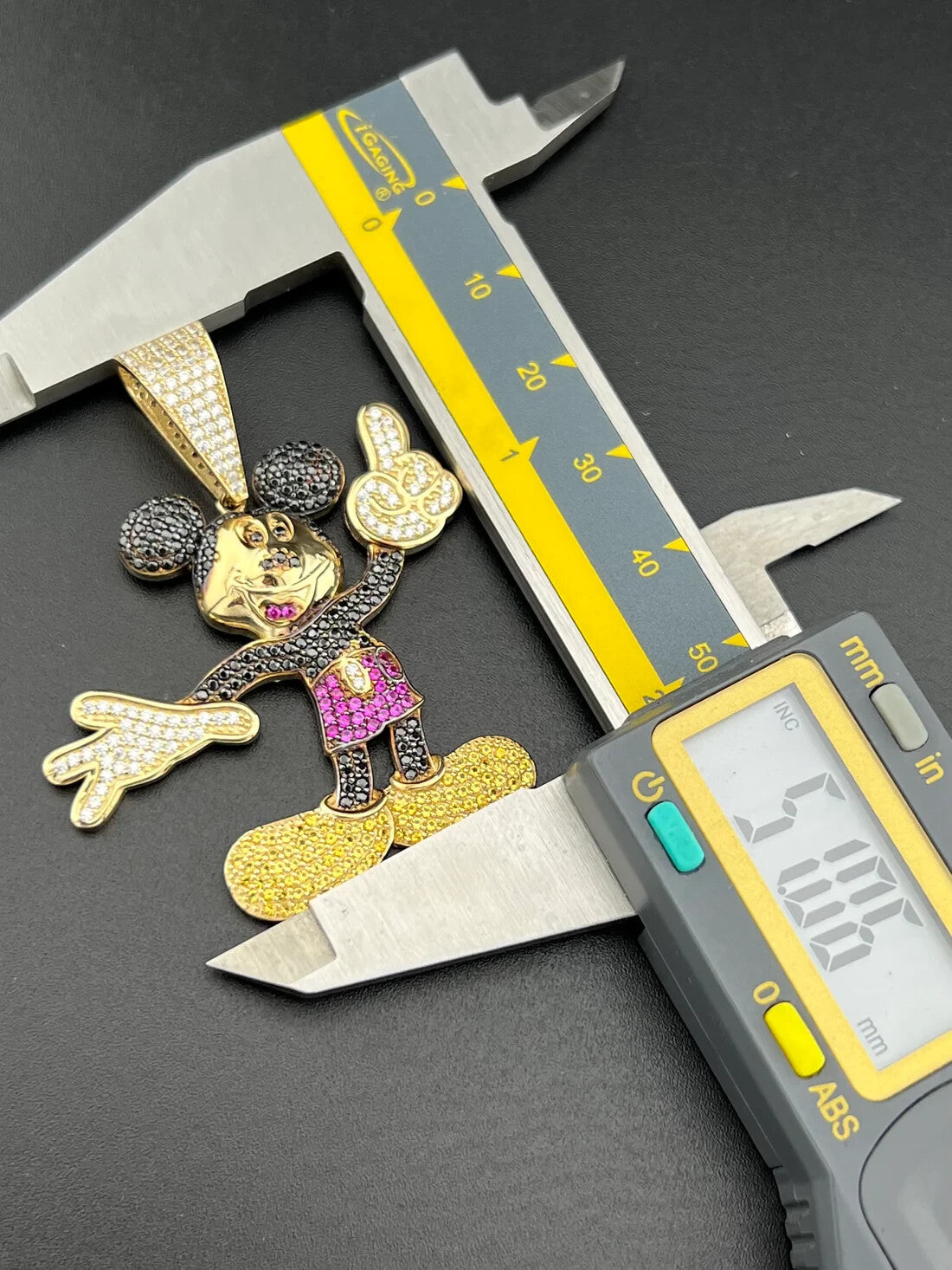 Celebrate the enduring spirit of a beloved, cheerful character with our Whimsical Mouse Character Charm, featuring a vibrant icon adorned with sparkling accents in 14K Yellow Gold, approximately 13 Grams, 51.06x45.28mm. This iconic character, known for its bright, golden body and face, embodies a sense of joy and merriment.